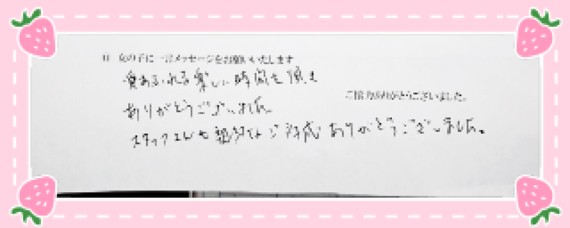 思い切って指名して、実際に会うと、緊張しましたが、自分の事をとても大切にしてくれて、ゆっくり、そして、まったりと楽しい時間を過ごす事が出来ました。